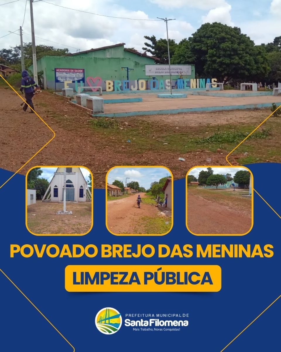 A Prefeitura Municipal de Santa Filomena realizou ações de limpeza pública no povoado Brejo das Meninas, reforçando o compromisso com a manutenção dos espaços coletivos e a qualidade de vida da população.